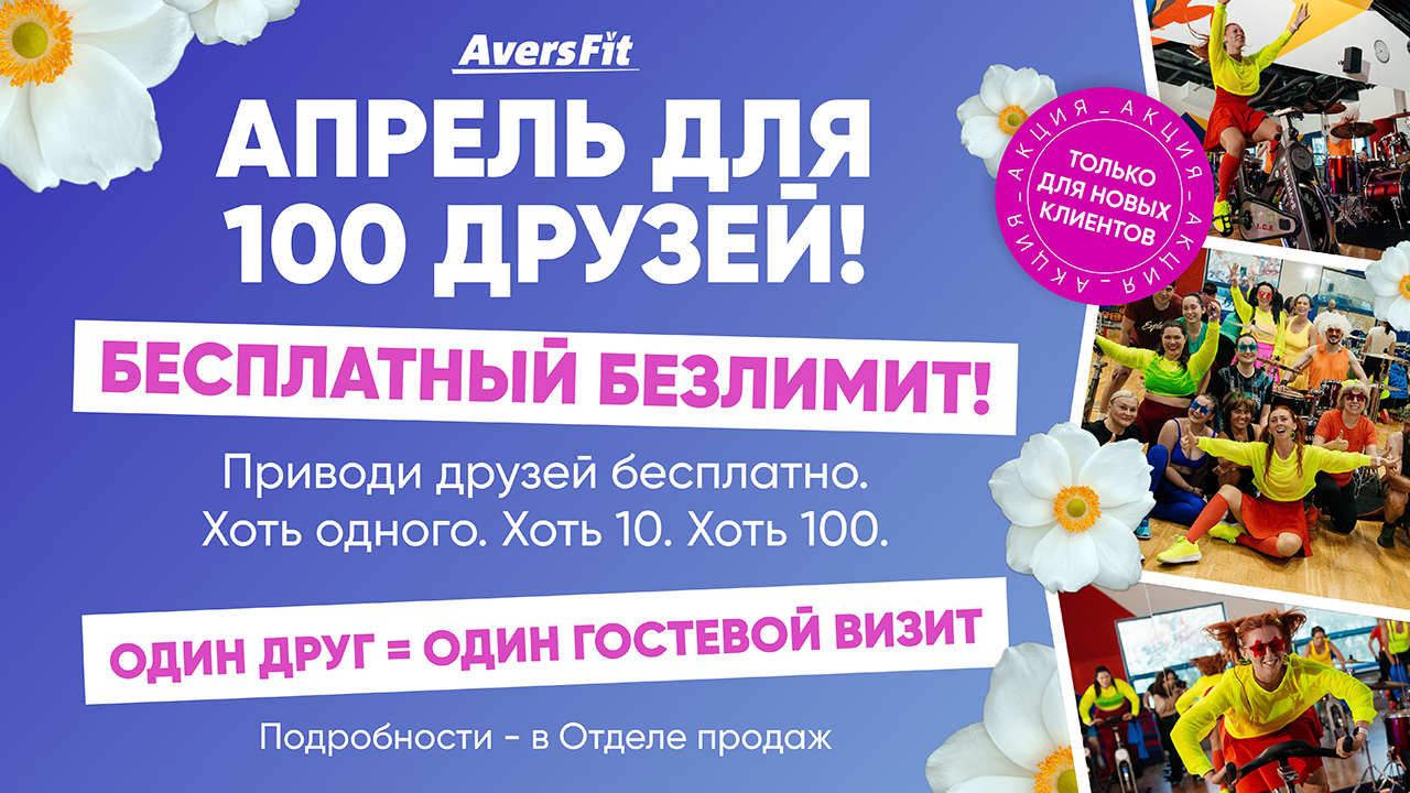 Покупайте карту себе, ходите заниматься фитнесом с друзьями весь апрель!